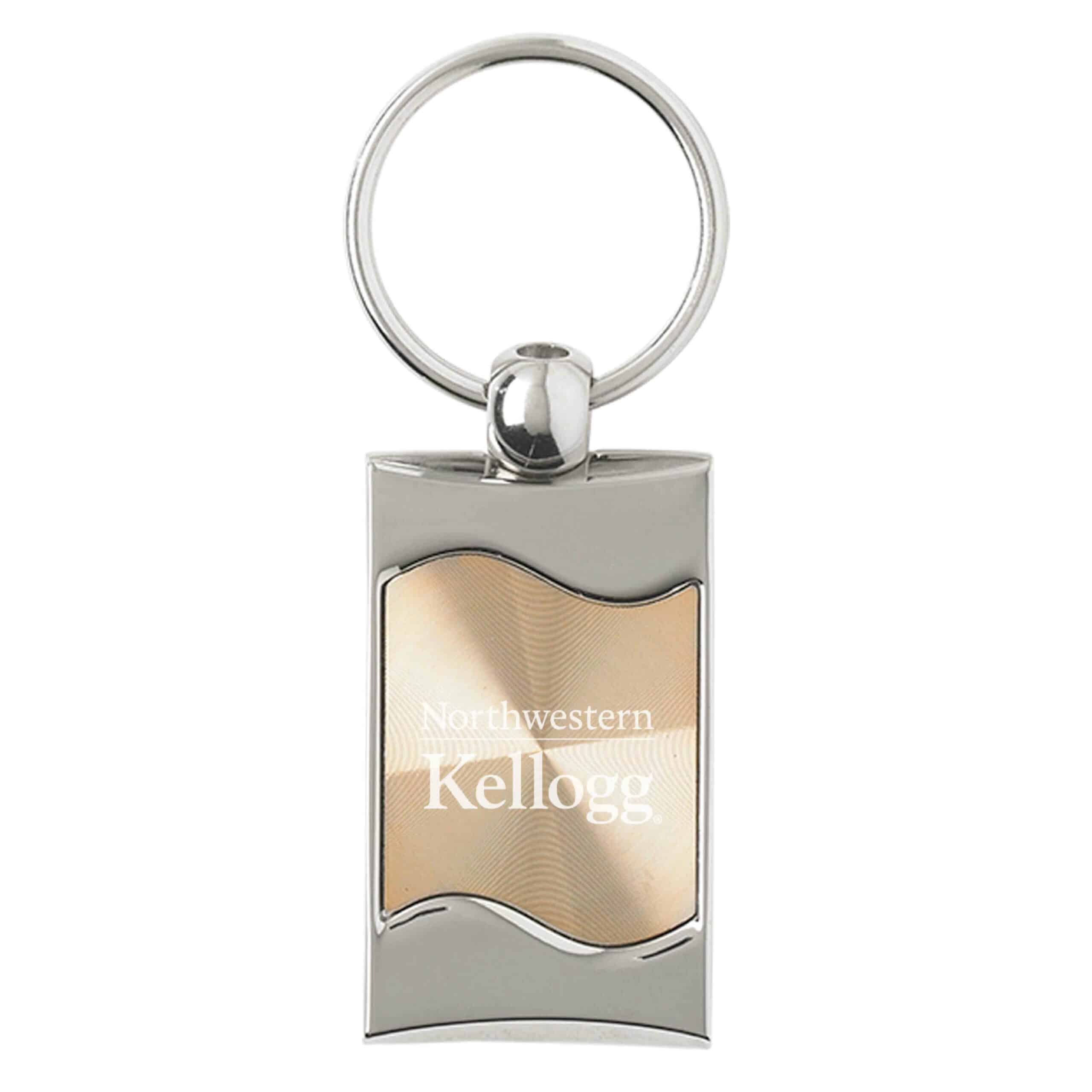 Northwestern University Wildcats Laser Engraved Gold CD Effect Wave Key Chain with Kellogg Design