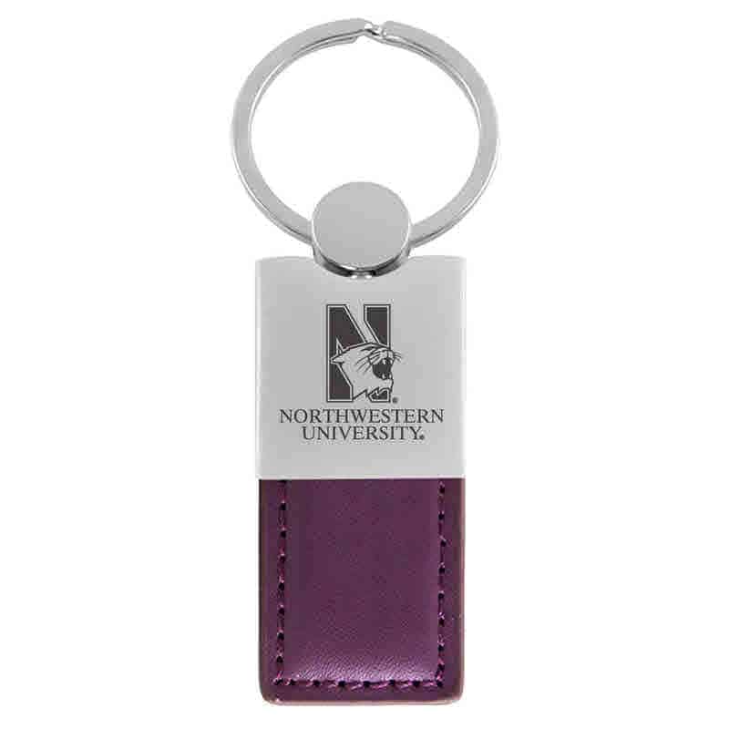 Northwestern University Wildcats Laser Engraved Purple Leather Keychain with N-Cat & Northwestern University Design quantity