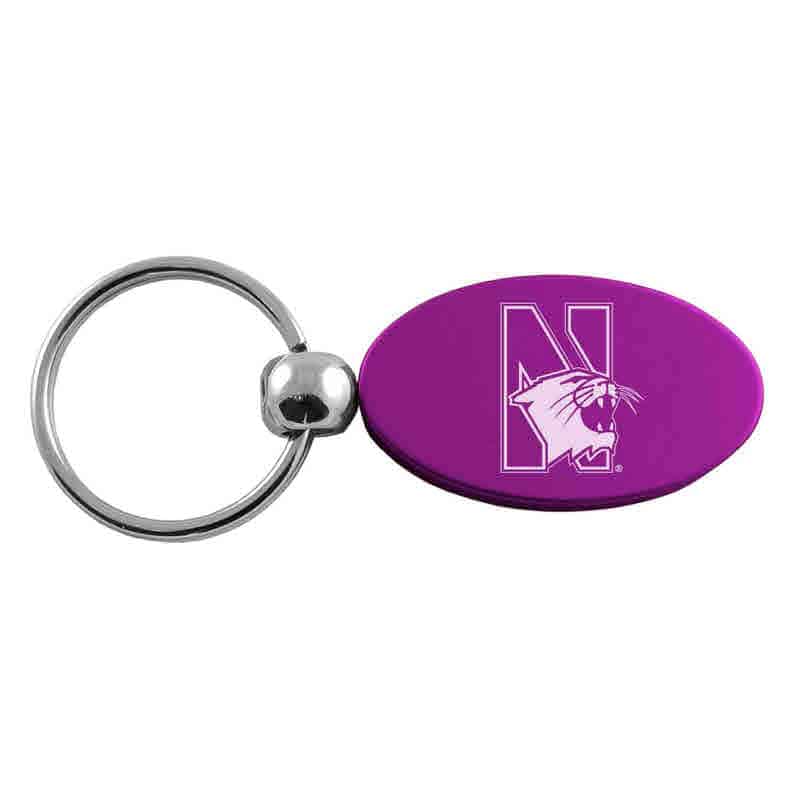 Northwestern University Wildcats Laser Engraved Purple Oval Keychain with N-Cat Design