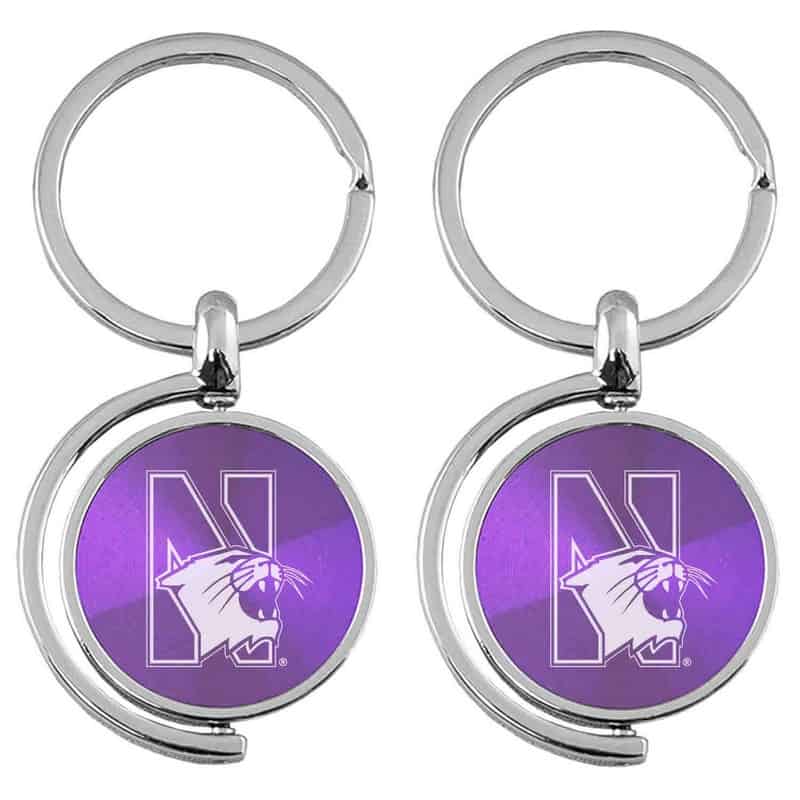Northwestern University Wildcats Laser Engraved Purple Spinner Keychain with N-Cat Design quantity