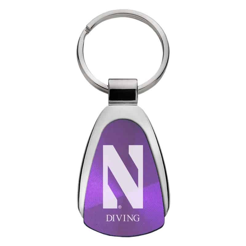 Northwestern University Wildcats Laser Engraved Purple Teardrop Keychain with Stylized N & Diving Design quantity