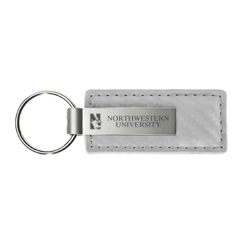 Northwestern University Wildcats Laser Engraved White Leather & Metal Keychain with N-Cat & Northwestern University Design quantity
