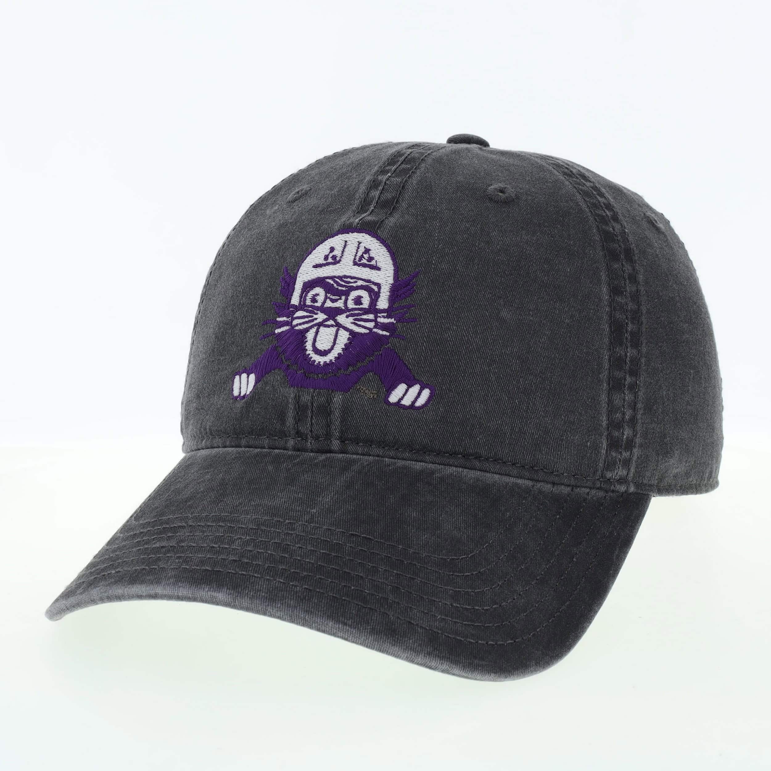 Northwestern University Wildcats Legacy Unconstructed Adjustable Black Terra Twill Hat with Vintage Cat with Helmet Design