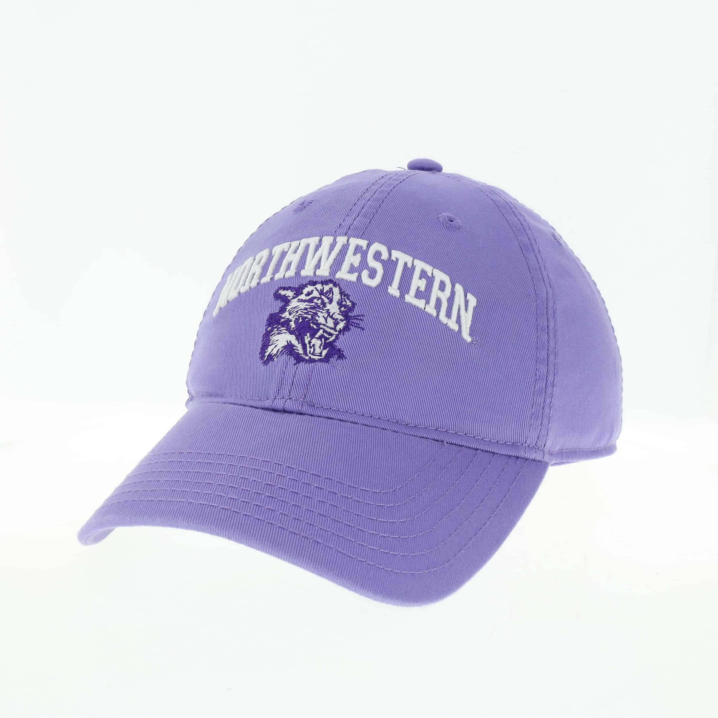 Northwestern University Wildcats Legacy Unconstructed Adjustable Lilac Hat with Arched Northwestern Over Vintage Cat’s Head Design
