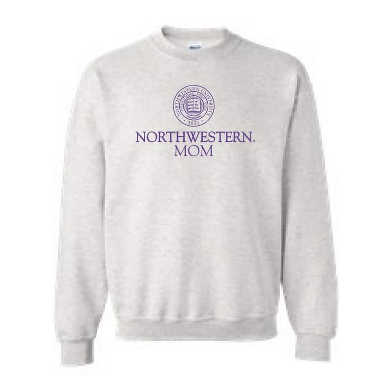 Northwestern University Wildcats Light Grey Crewneck Sweatshirt With Mom Design