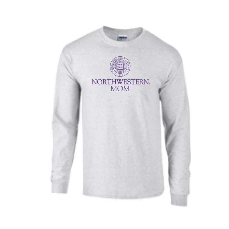 Northwestern University Wildcats Light Grey Long Sleeve Tee Shirt with Mom Design