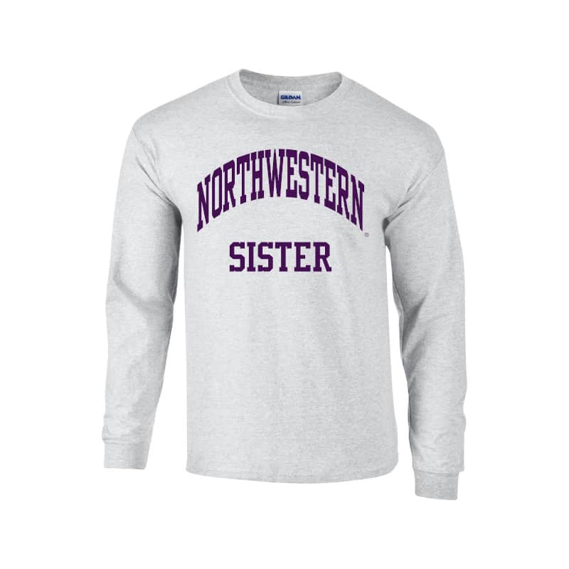 Northwestern University Wildcats Light Grey Long Sleeve Tee Shirt with Sister Design
