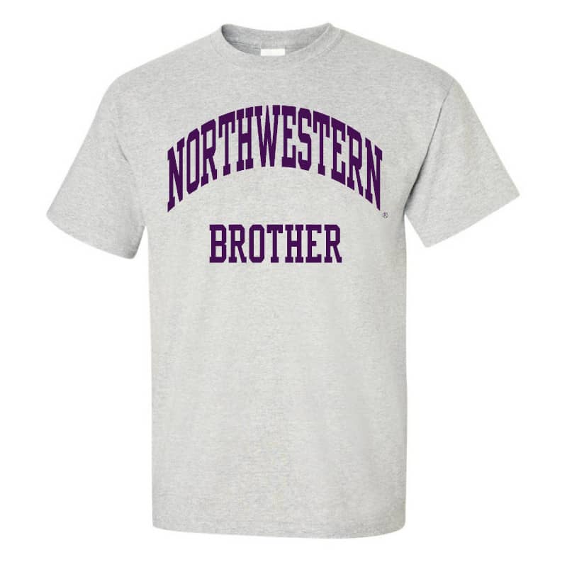 Northwestern University Wildcats Light Grey Short Sleeve Tee Shirt with Brother Design