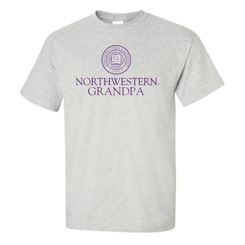 Northwestern University Wildcats Light Grey Short Sleeve Tee Shirt with Grandpa Design