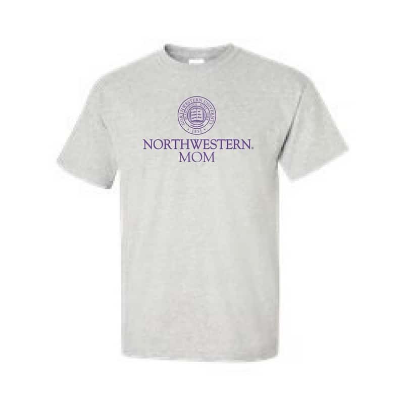 Northwestern University Wildcats Light Grey Short Sleeve Tee Shirt with Mom Design