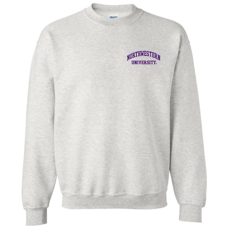 Northwestern University Wildcats Men’s Ash Grey Crewneck Sweatshirt with Left Chest Embroidered Northwestern University Design