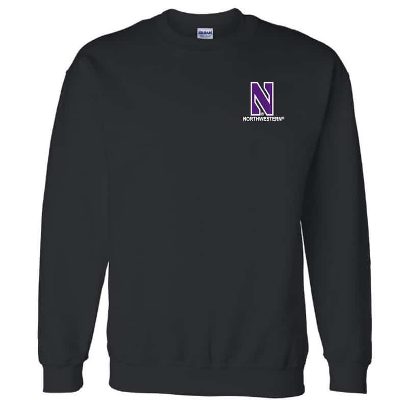 Men’s Black Crewneck Sweatshirt with Left Chest Embroidered Stylized N & Northwestern Design