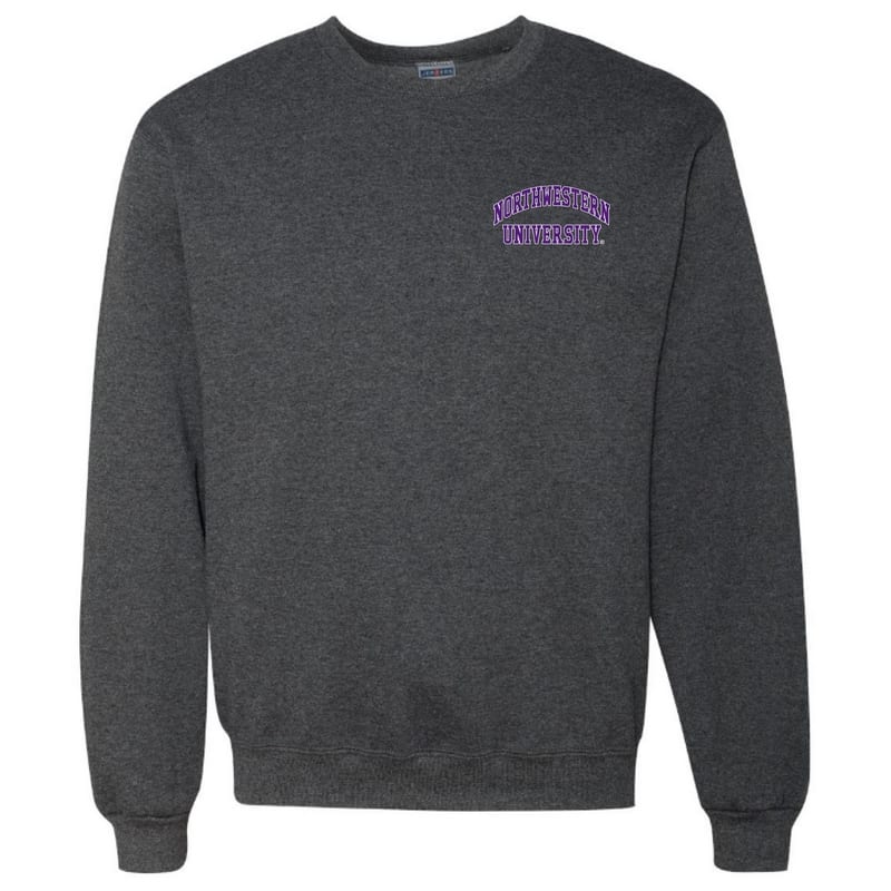 Northwestern University Wildcats Men’s Black Heather Crewneck Sweatshirt with Left Chest Embroidered Northwestern University Design