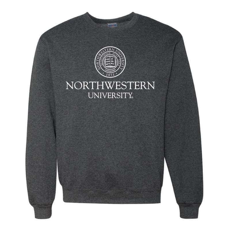 Northwestern University Wildcats Men’s Black Heather Crewneck Sweatshirt with Northwestern University Seal Design