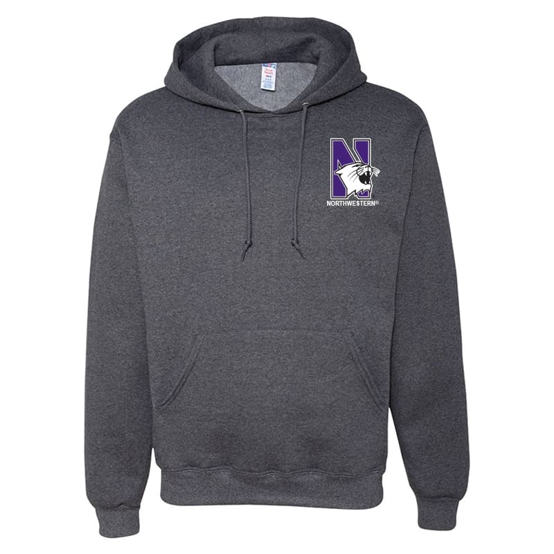 Northwestern University Wildcats Men’s Black Heather Hooded Sweatshirt with Left Chest Embroidered N-Cat & Northwestern Design