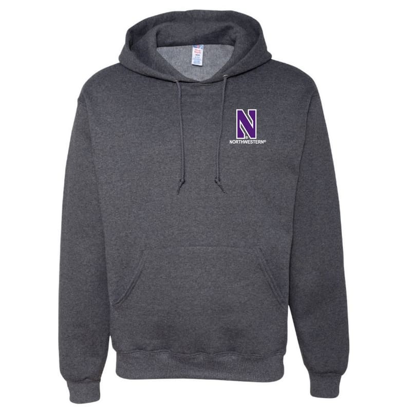 Northwestern University Wildcats Men’s Black Heather Hooded Sweatshirt with Left Chest Embroidered Stylized N & Northwestern Design