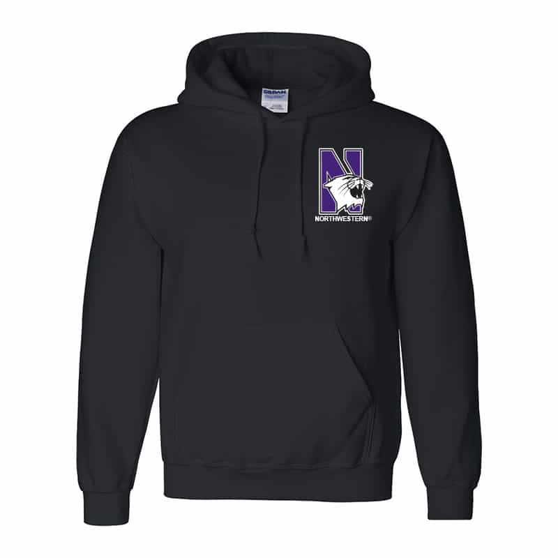 Northwestern University Wildcats Men’s Black Hooded Sweatshirt with Left Chest Embroidered N-Cat & Northwestern Design