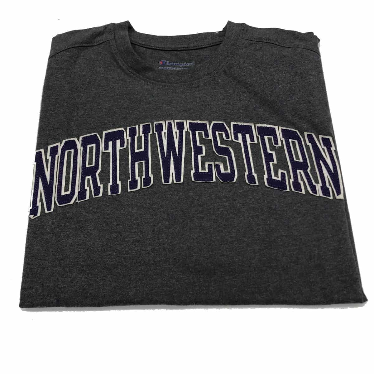 Northwestern University Wildcats Men’s Granite Heather Long Sleeve Tee Shirt with Vintage Appliqué Arched Northwestern Design