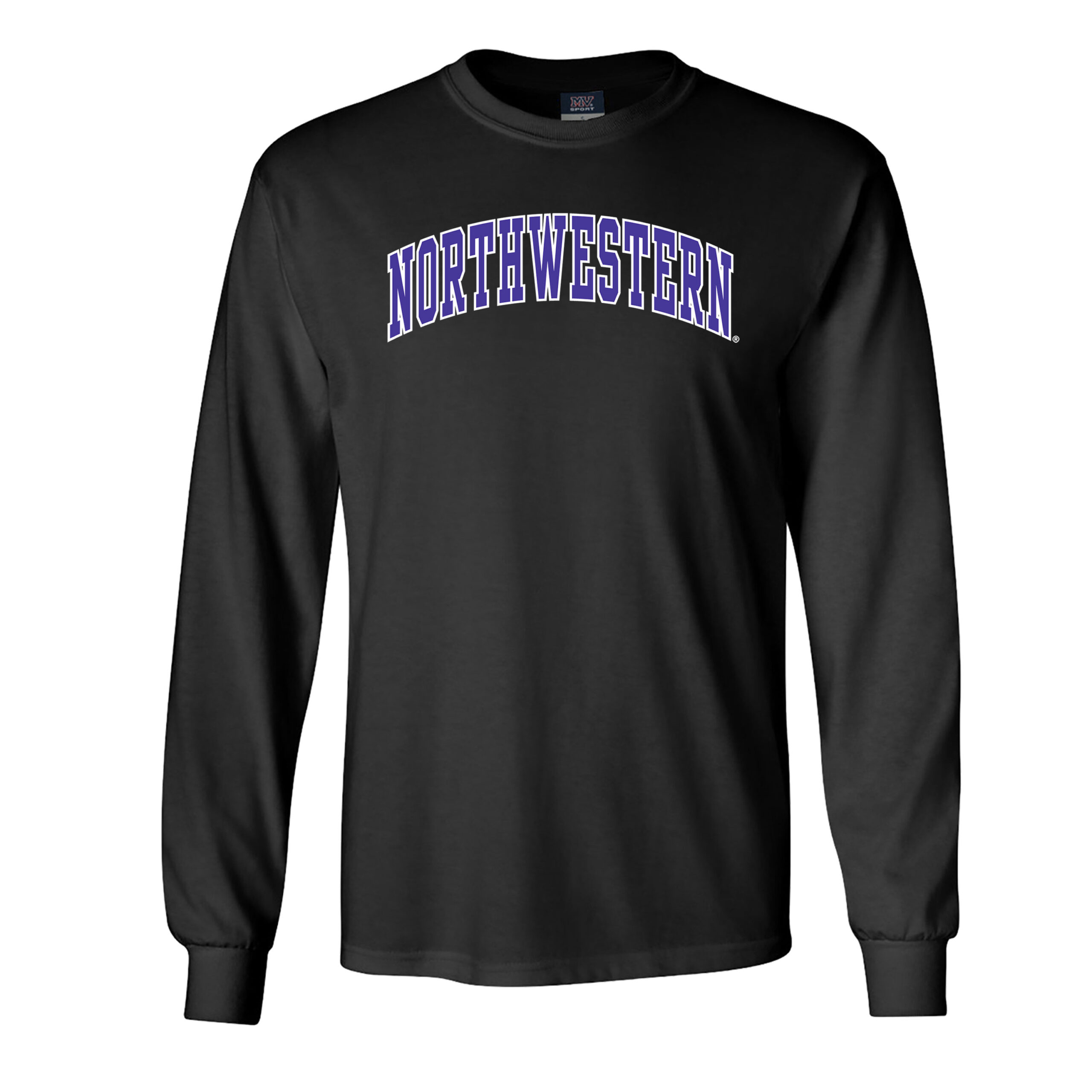 Northwestern University Wildcats Men’s MV Black Classic Long Sleeve Tee with Two Color Arch Design