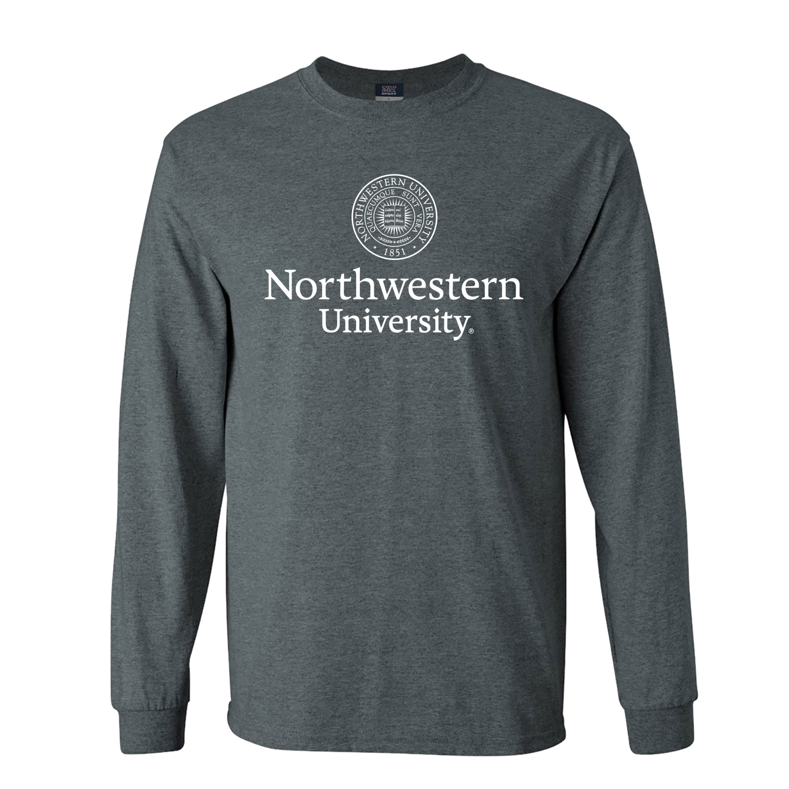 Northwestern University Wildcats Men’s MV Charcoal Heather Classic Long Sleeve Tee with Seal Design