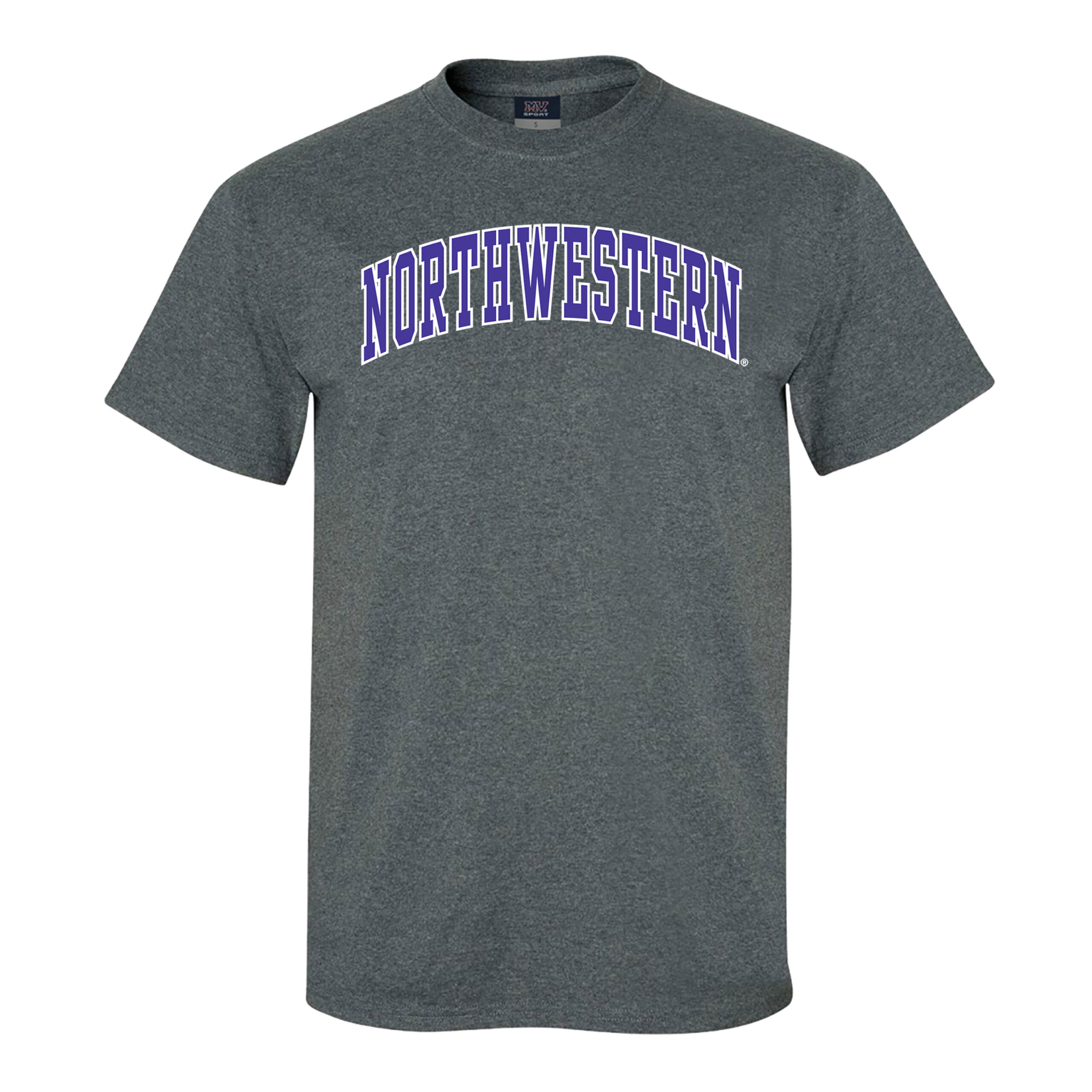 Northwestern University Wildcats Men’s MV Charcoal Heather Classic Tee with Two Color Arch Design