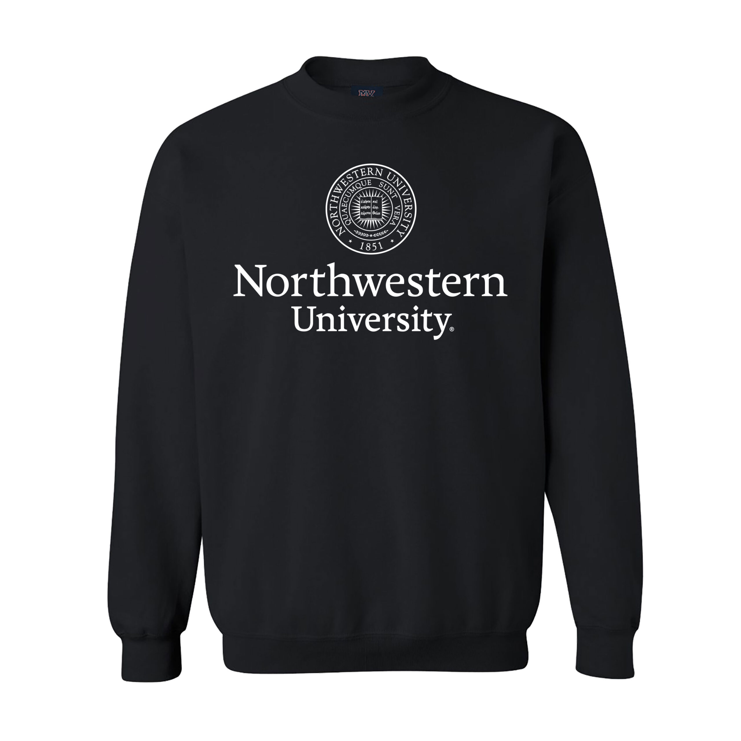 Northwestern University Wildcats Men’s MV Fundamental Fleece Black Crewneck Sweatshirt with Seal Design