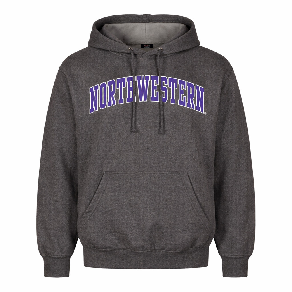 Northwestern University Wildcats Men’s MV Fundamental Fleece Charcoal Heather Hooded Sweatshirt with Two Color Arch Design