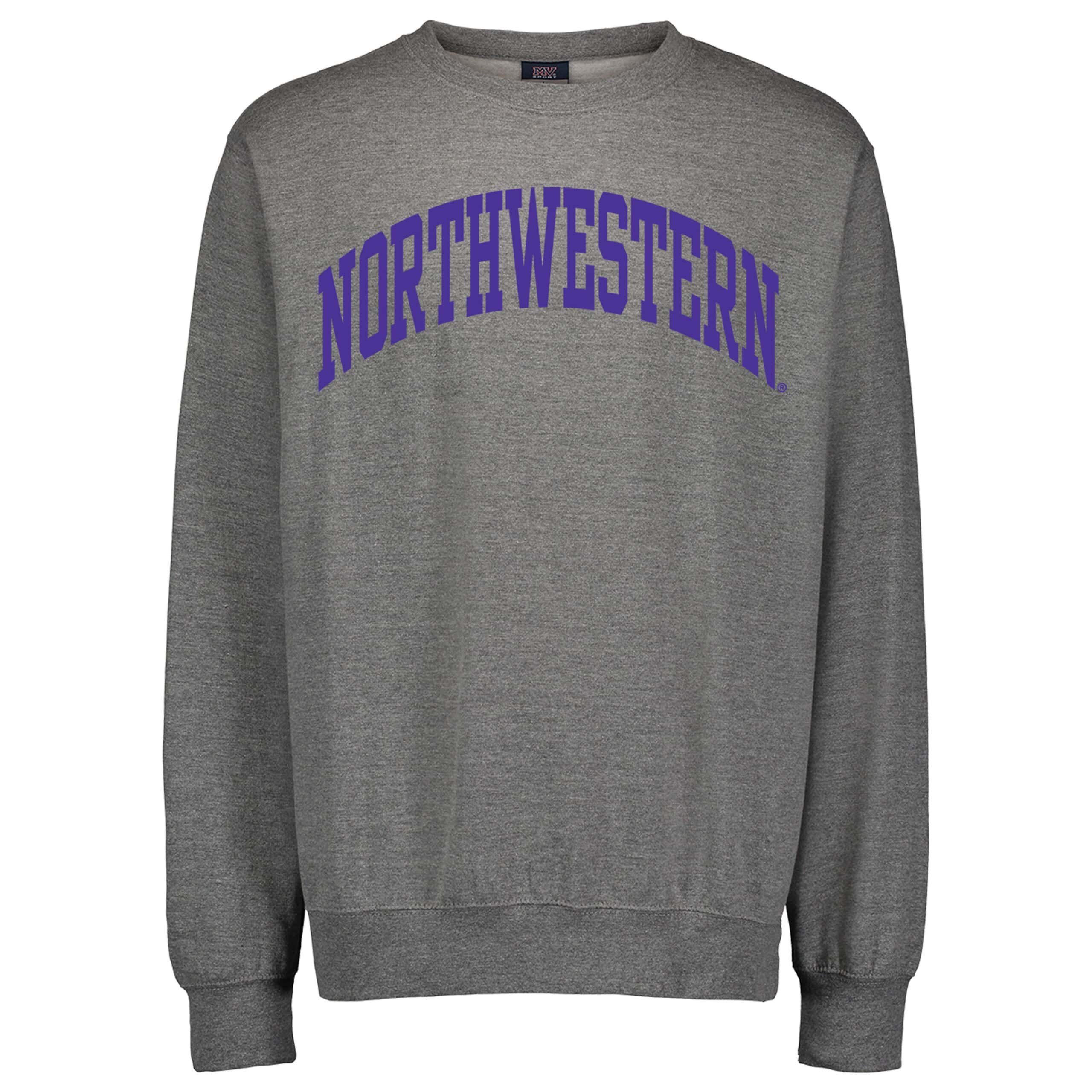 Northwestern University Wildcats Men’s MV Fundamental Fleece Graphite Crewneck Sweatshirt with One Color Arch Design in Purple