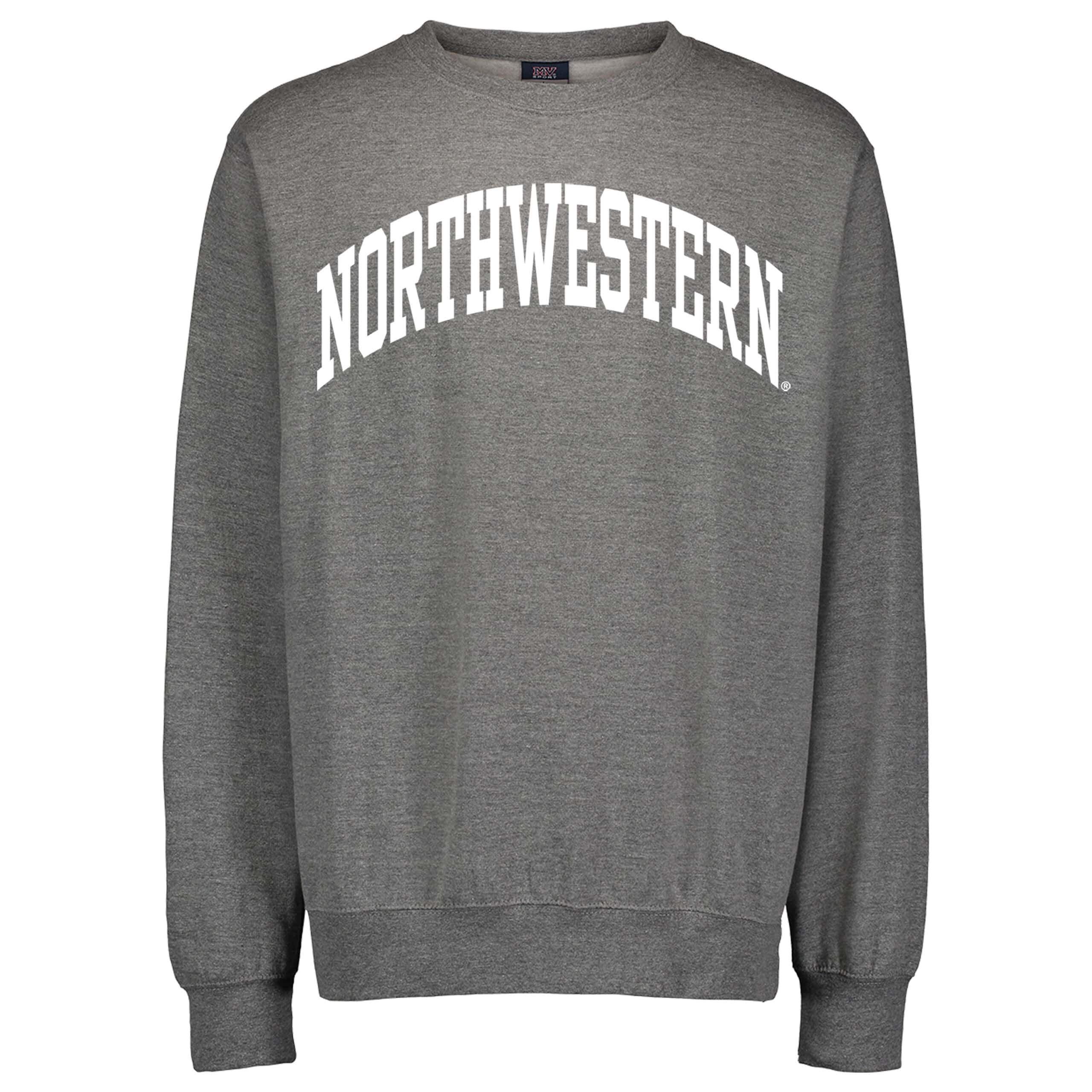 Northwestern University Wildcats Men’s MV Fundamental Fleece Graphite Crewneck Sweatshirt with One Color Arch Design in White