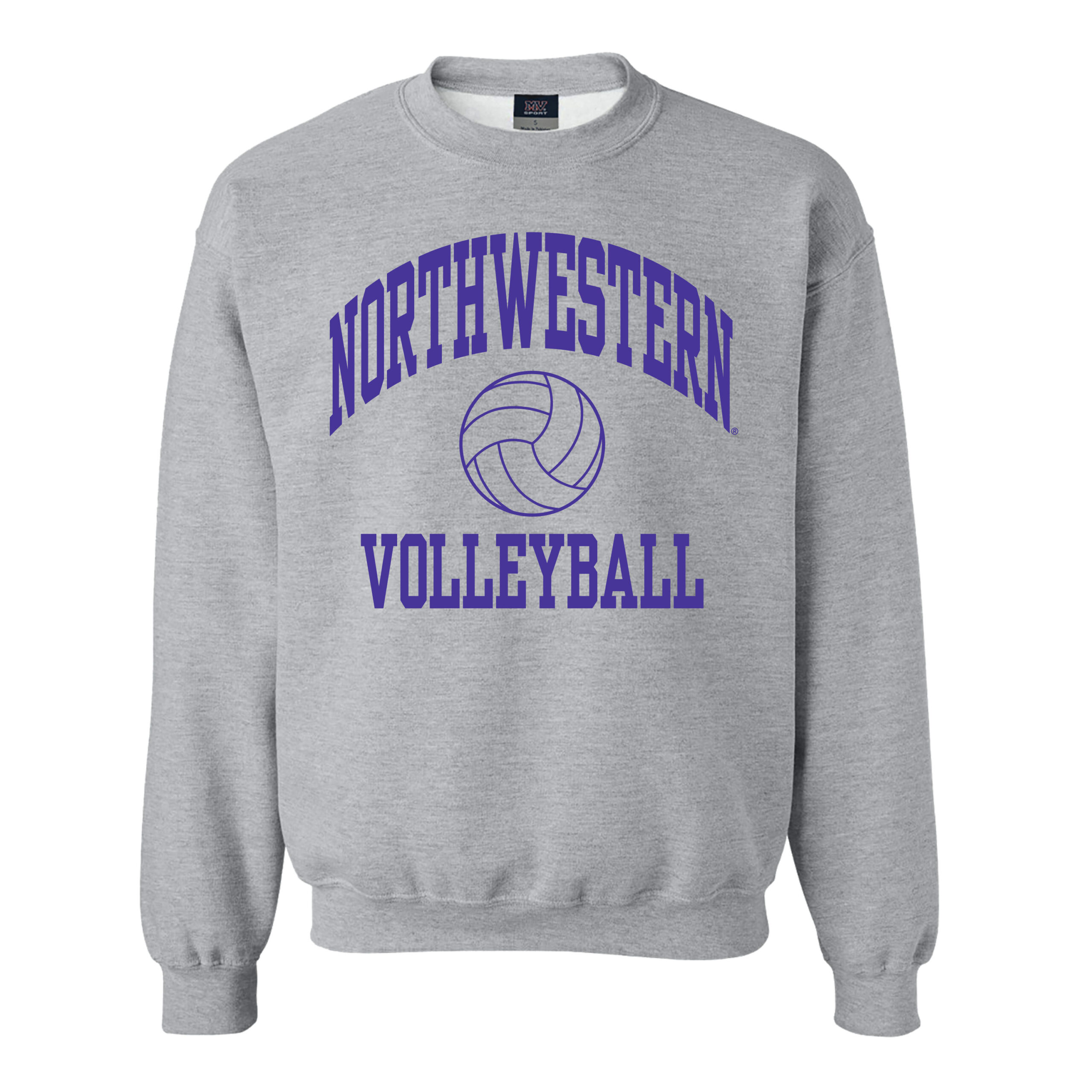 Northwestern University Wildcats Men’s MV Fundamental Fleece Heather Grey Crewneck Sweatshirt with Northwestern Volleyball Design