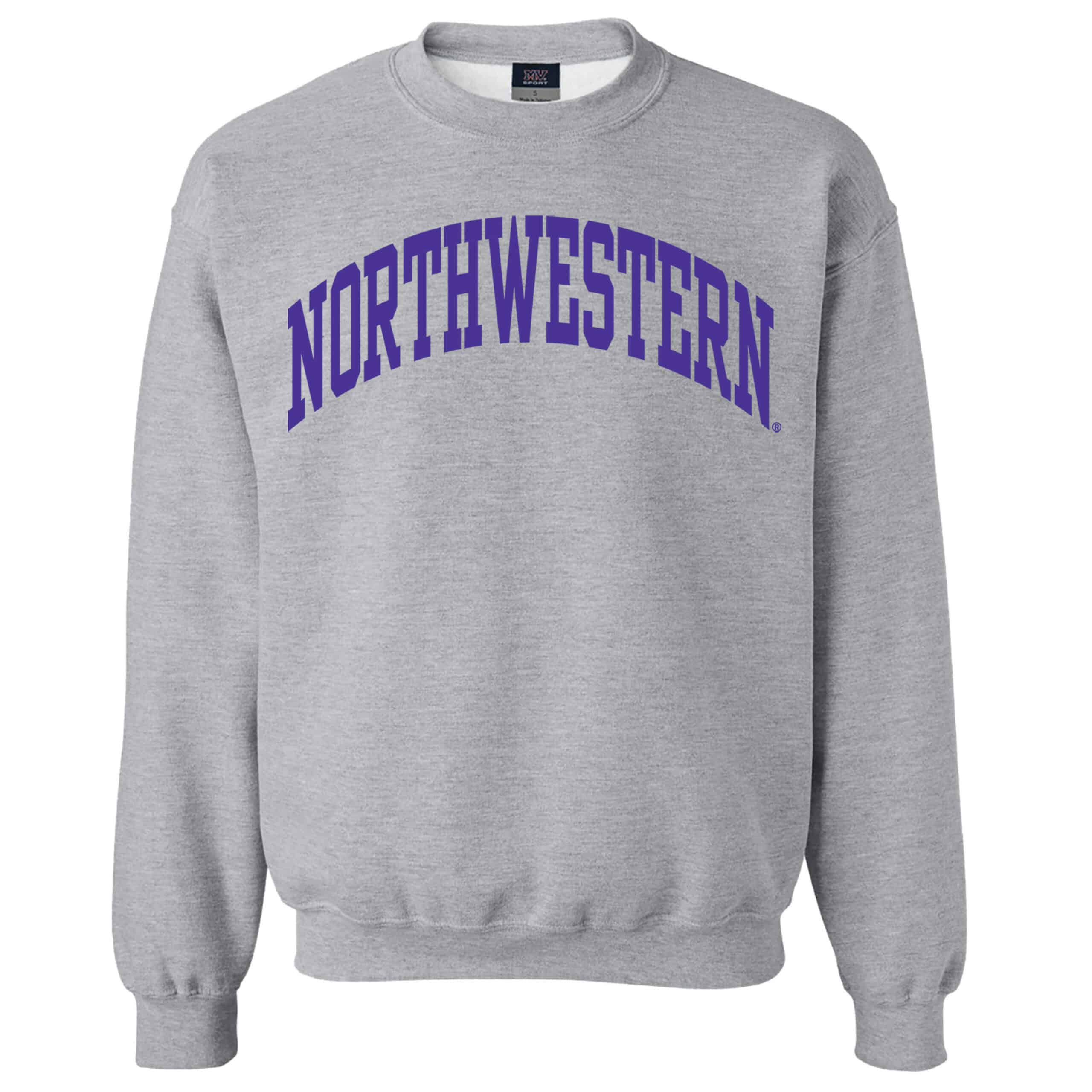 Northwestern University Wildcats Men’s MV Fundamental Fleece Heather Grey Crewneck Sweatshirt with One Color Arch Design