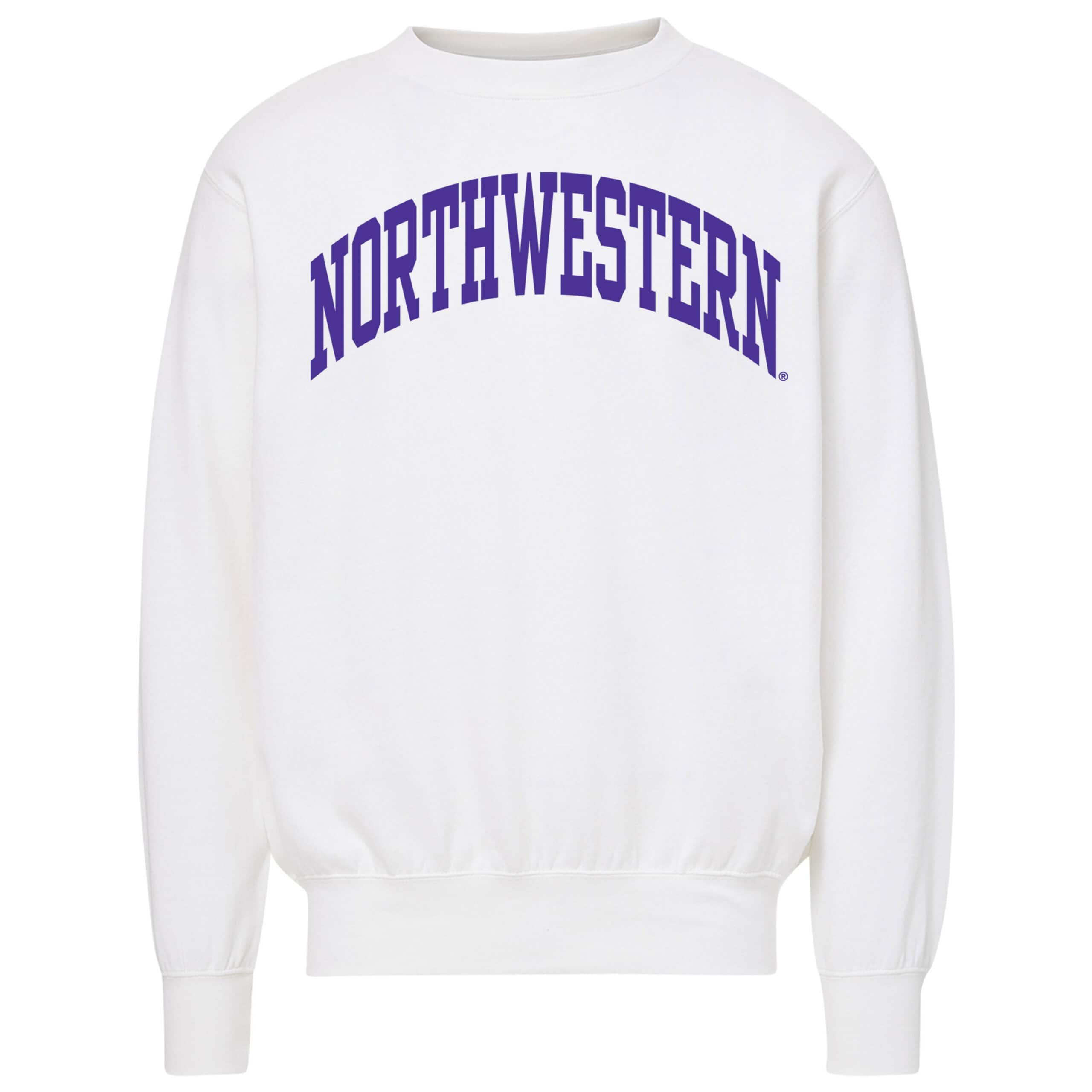 Northwestern University Wildcats Men’s MV Fundamental Fleece White Crewneck Sweatshirt with One Color Arch Design