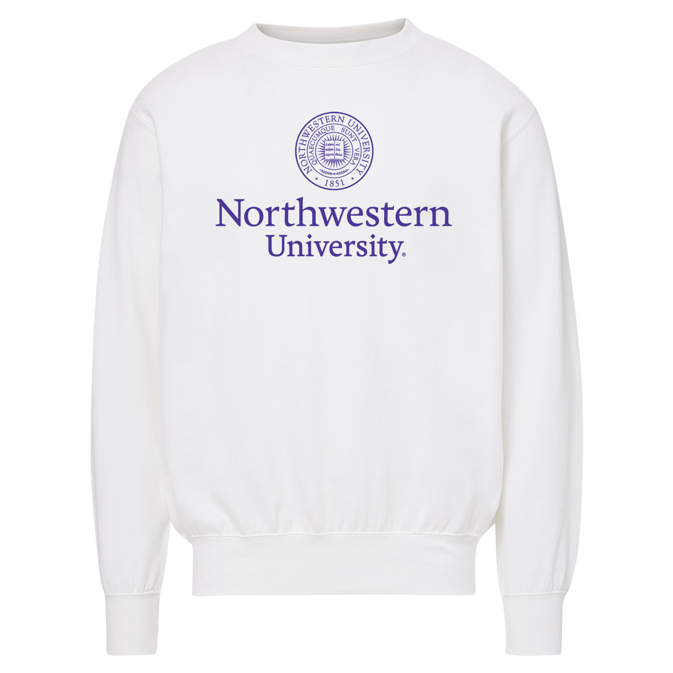Northwestern University Wildcats Men’s MV Fundamental Fleece White Crewneck Sweatshirt with Seal Design