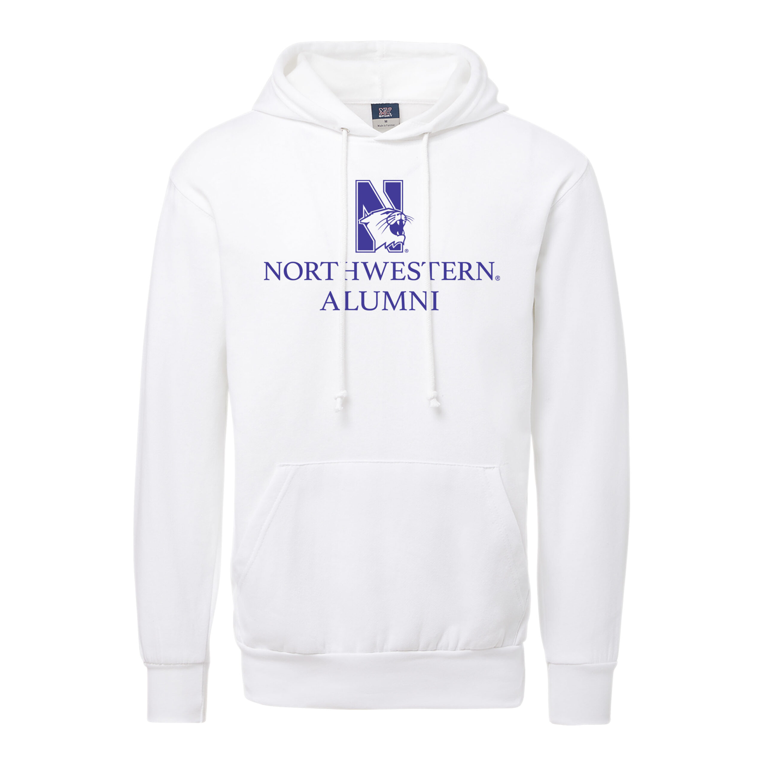 Northwestern University Wildcats Men’s MV Fundamental Fleece White Hooded Sweatshirt with Northwestern Alumni & N-Cat Design