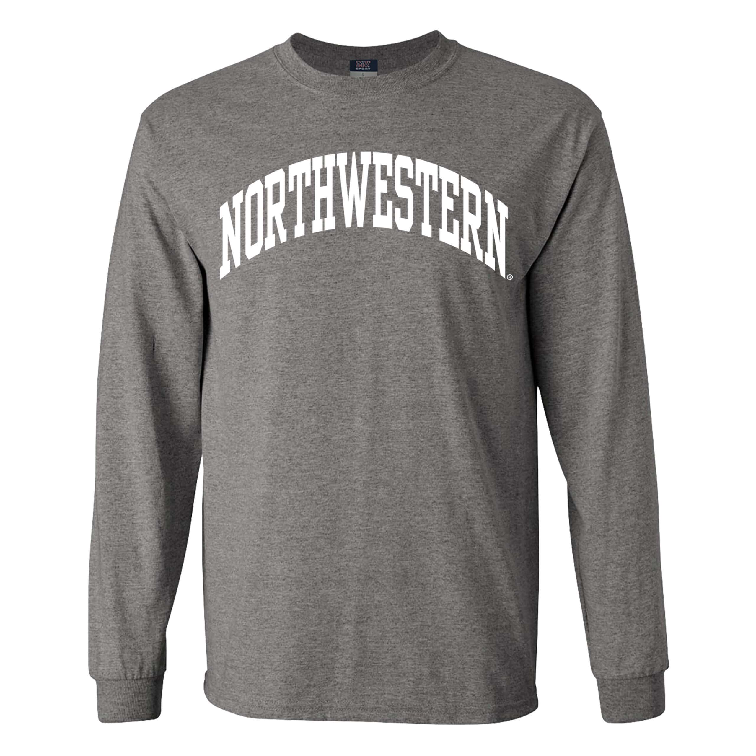 Northwestern University Wildcats Men’s MV Graphite Classic Long Sleeve Tee with One Color Arch Design in White