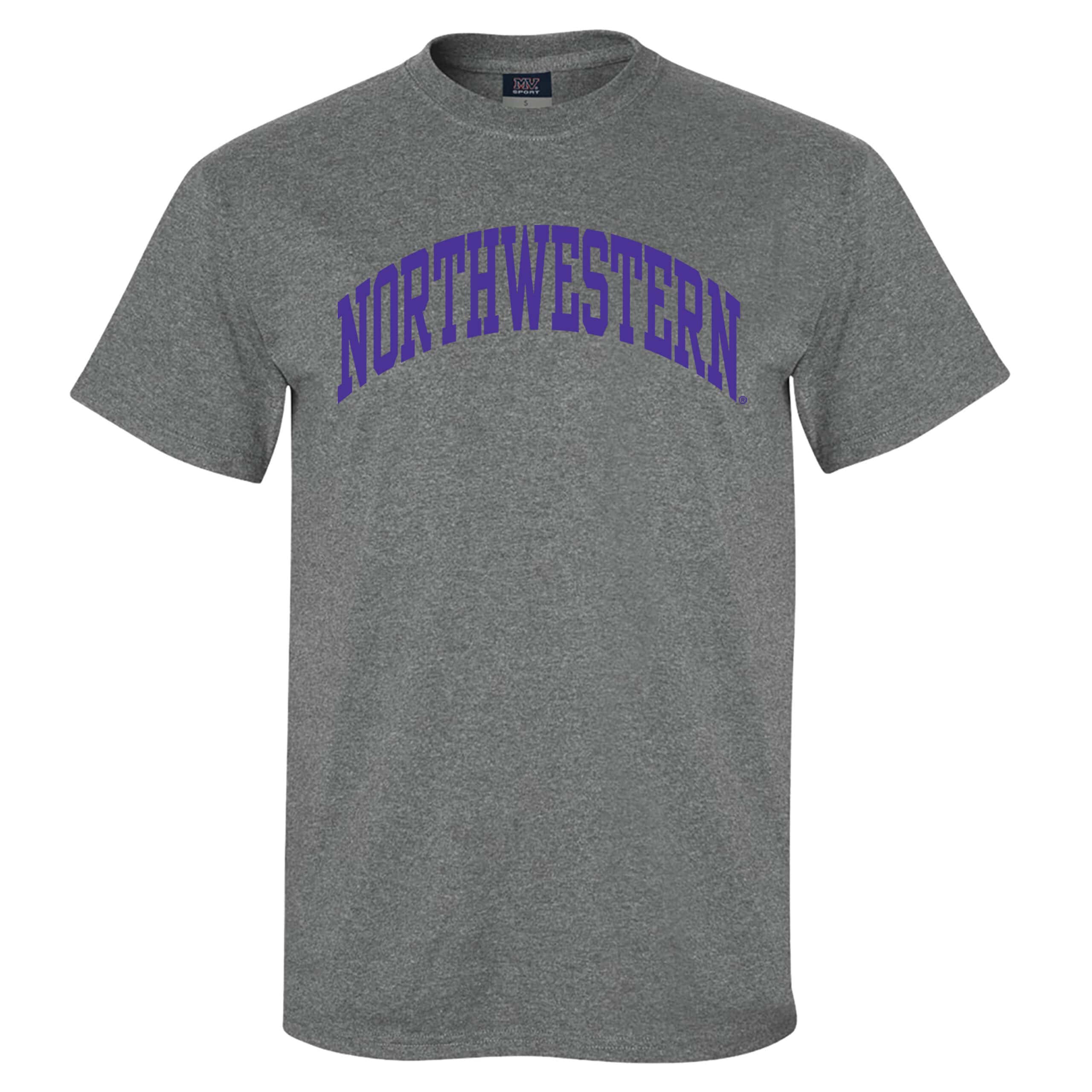 Northwestern University Wildcats Men’s MV Graphite Classic Tee with One Color Arch Design in Purple