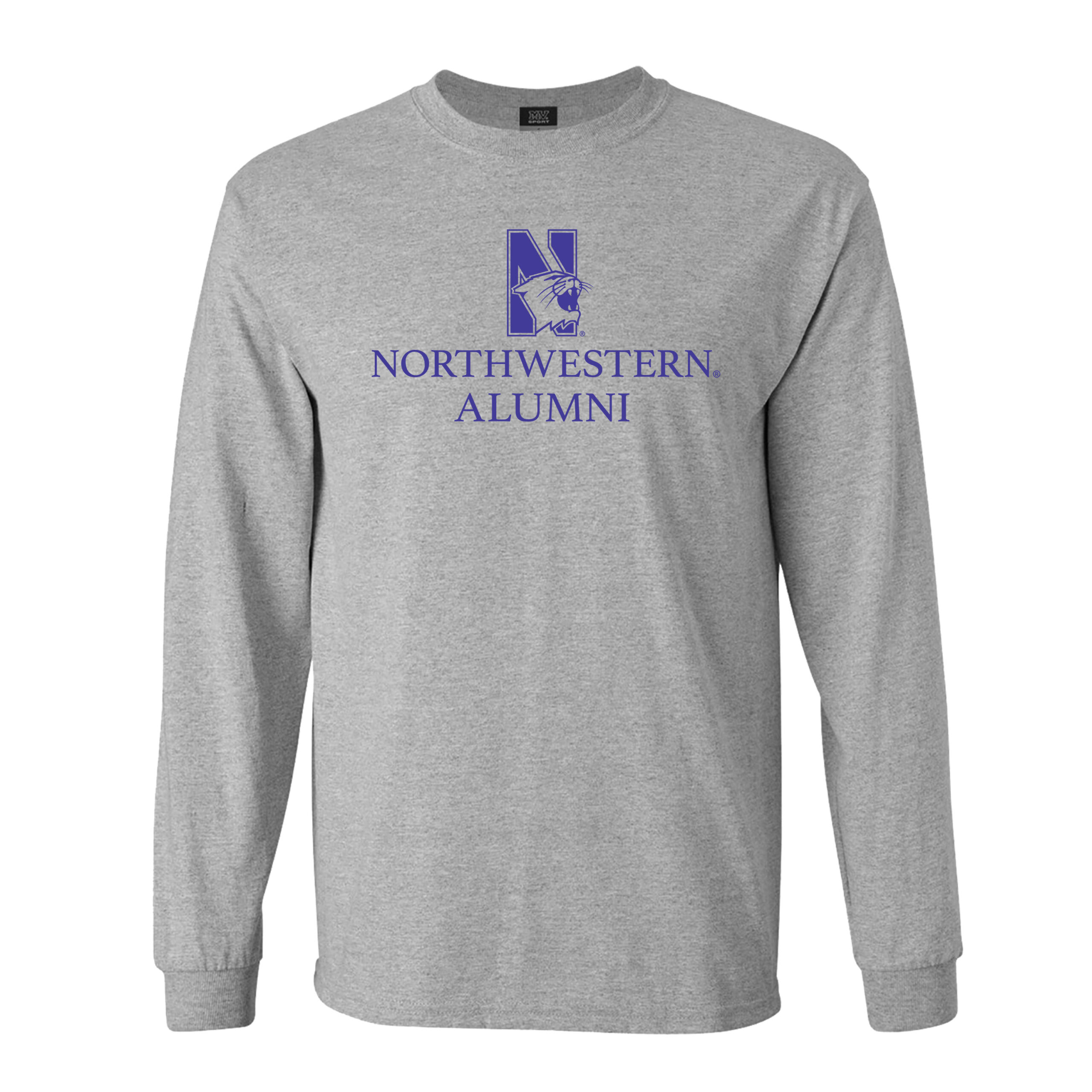 Northwestern University Wildcats Men’s MV Heather Grey Classic Long Sleeve Tee with Northwestern Alumni & N-Cat Design