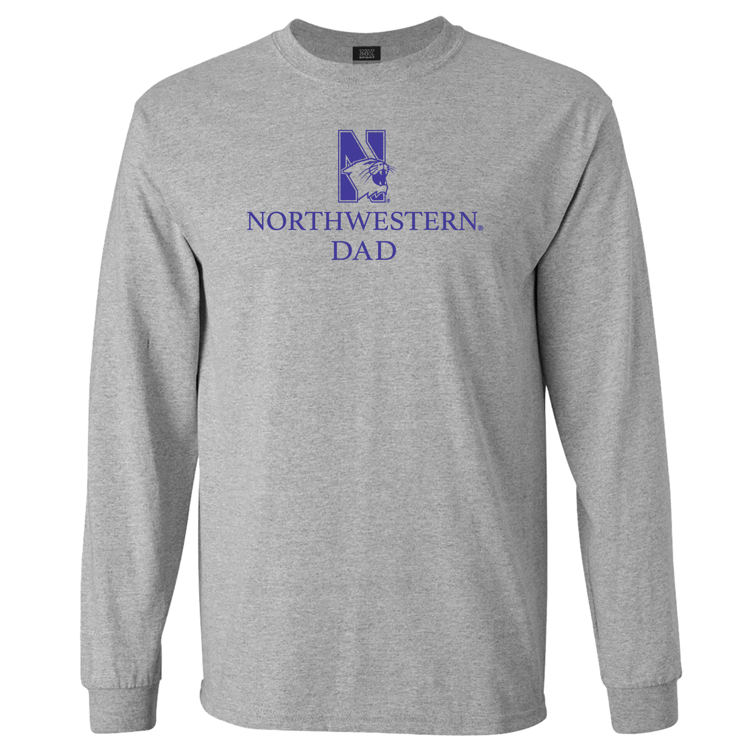 Northwestern University Wildcats Men’s MV Heather Grey Classic Long Sleeve Tee with Northwestern Dad & N-Cat Design