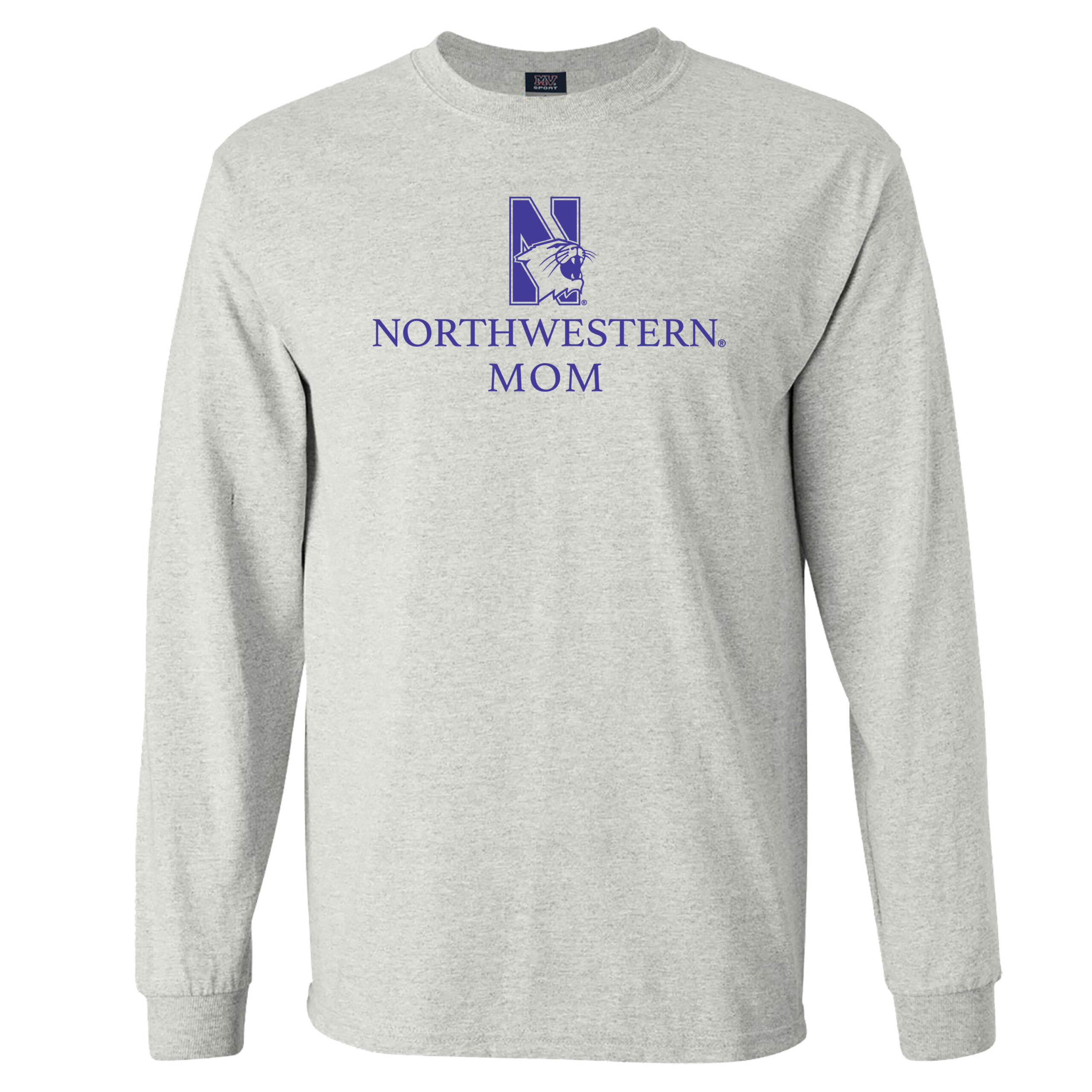 Northwestern University Wildcats Men’s MV Marble Heather Classic Long Sleeve Tee with Northwestern Mom & N-Cat Design