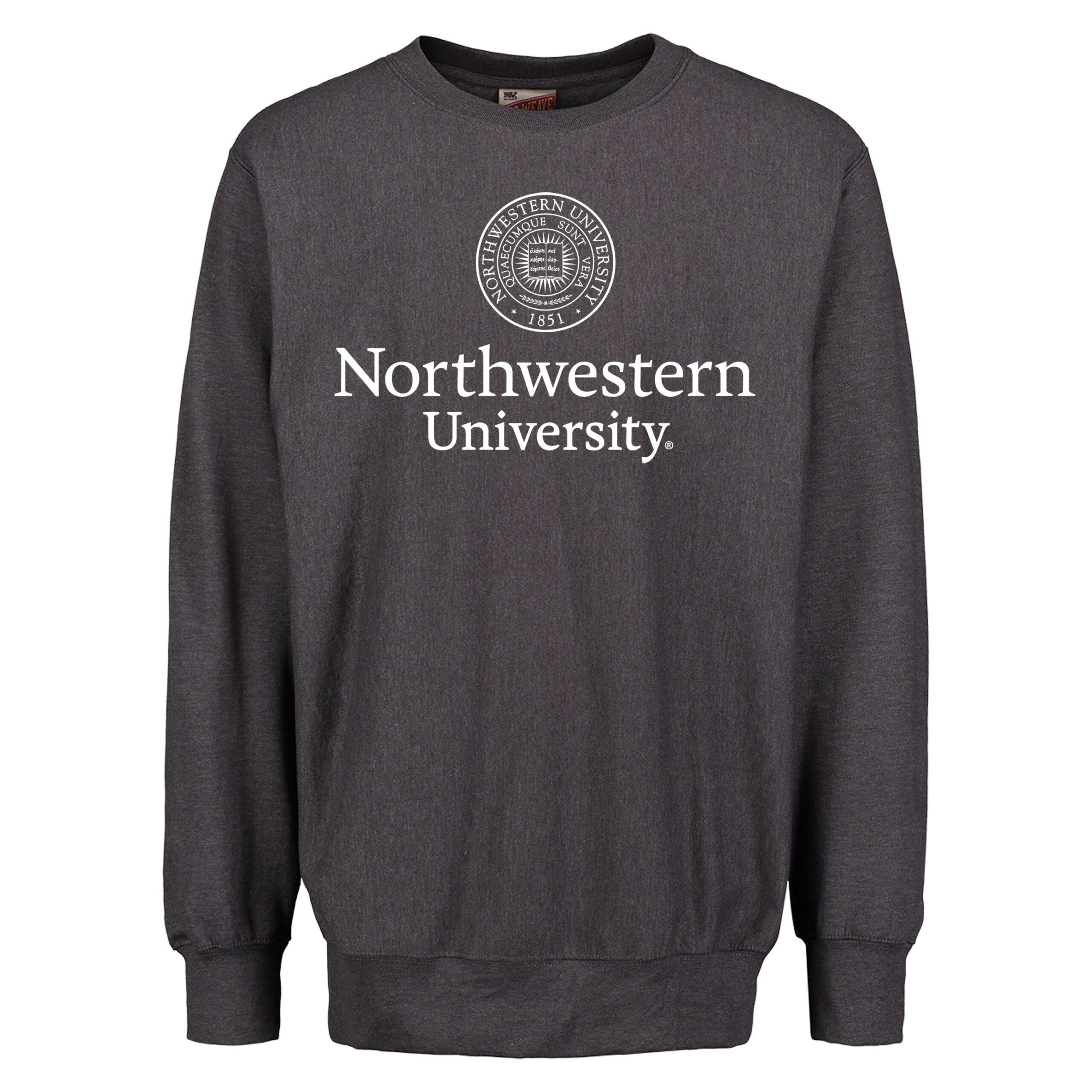Northwestern University Wildcats Men’s MV Pro-Weave Super-Heavy Charcoal Crewneck Sweatshirt with Seal Design