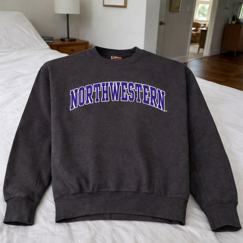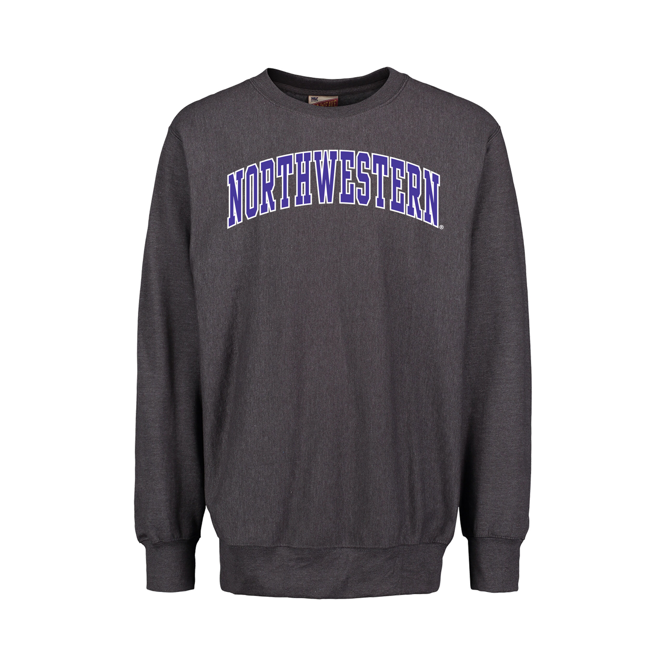 Northwestern University Wildcats Men’s MV Pro-Weave Super-Heavy Charcoal Crewneck Sweatshirt with Two Color Arch Design