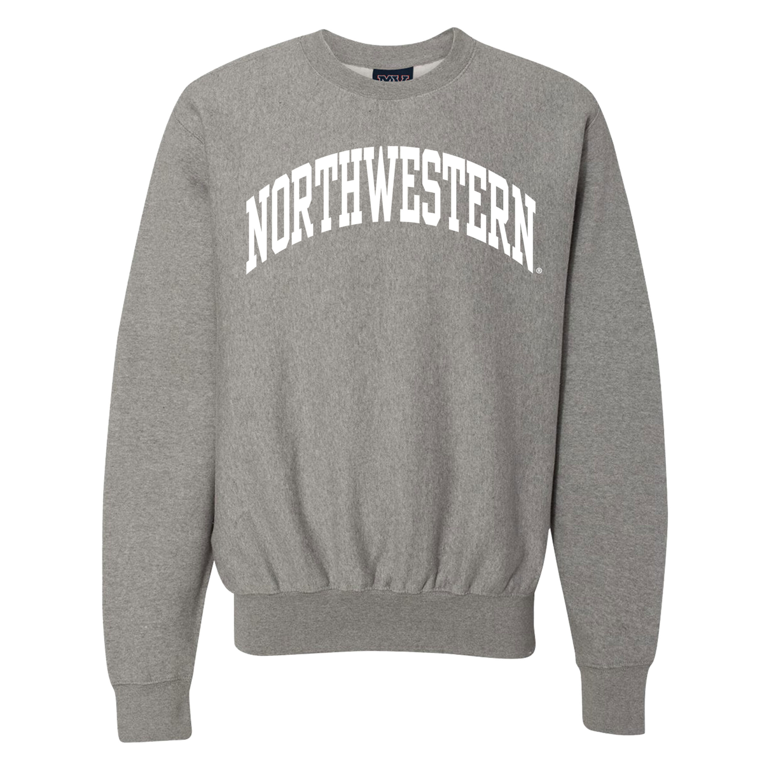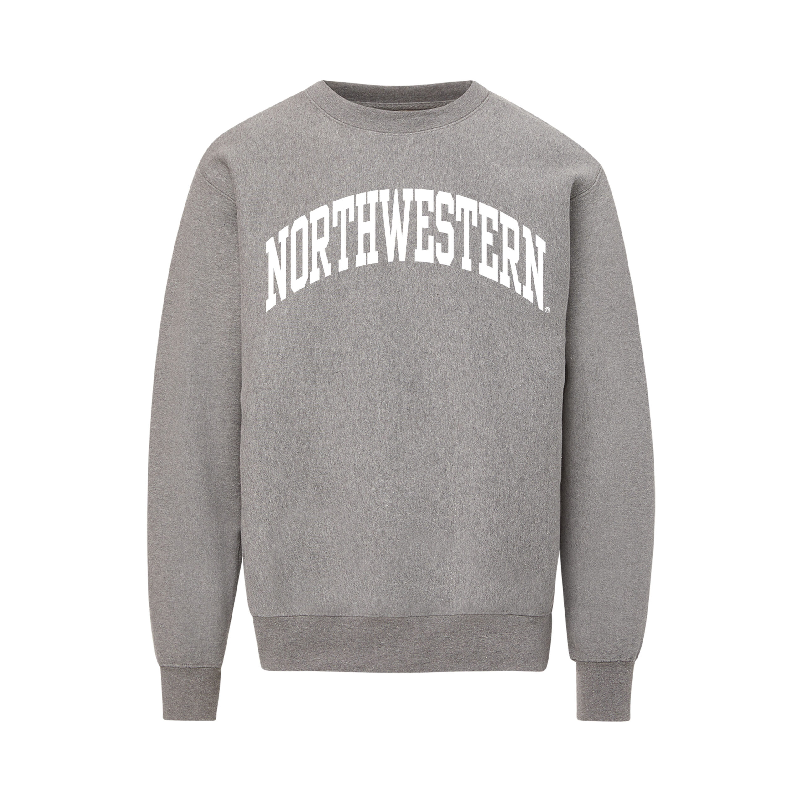 Northwestern University Wildcats Men’s MV Pro-Weave Super-Heavy Graphite Crewneck Sweatshirt with One Color Arch Design In white