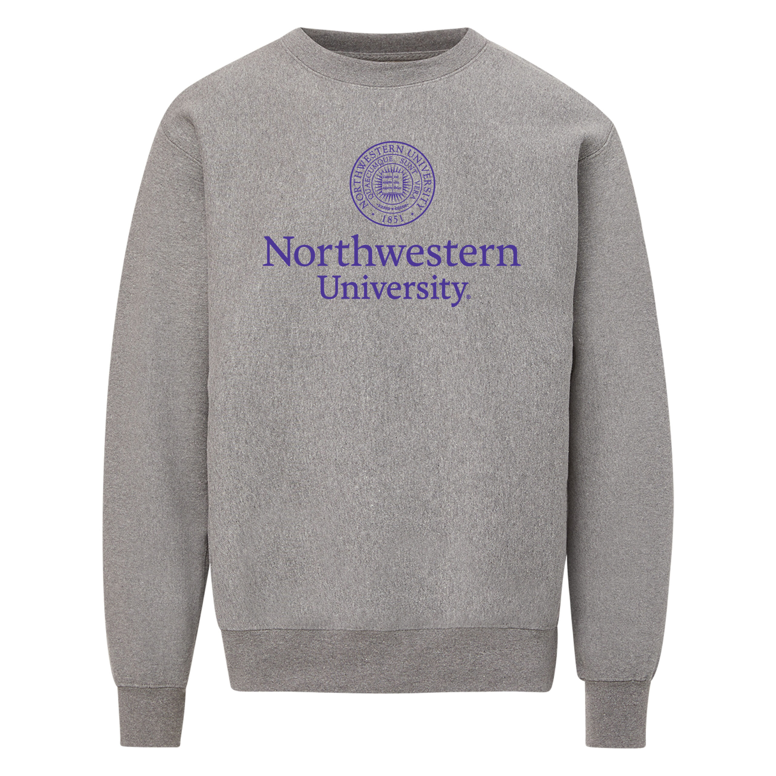 Northwestern University Wildcats Men’s MV Pro-Weave Super-Heavy Graphite Crewneck Sweatshirt with Seal Design in Purple