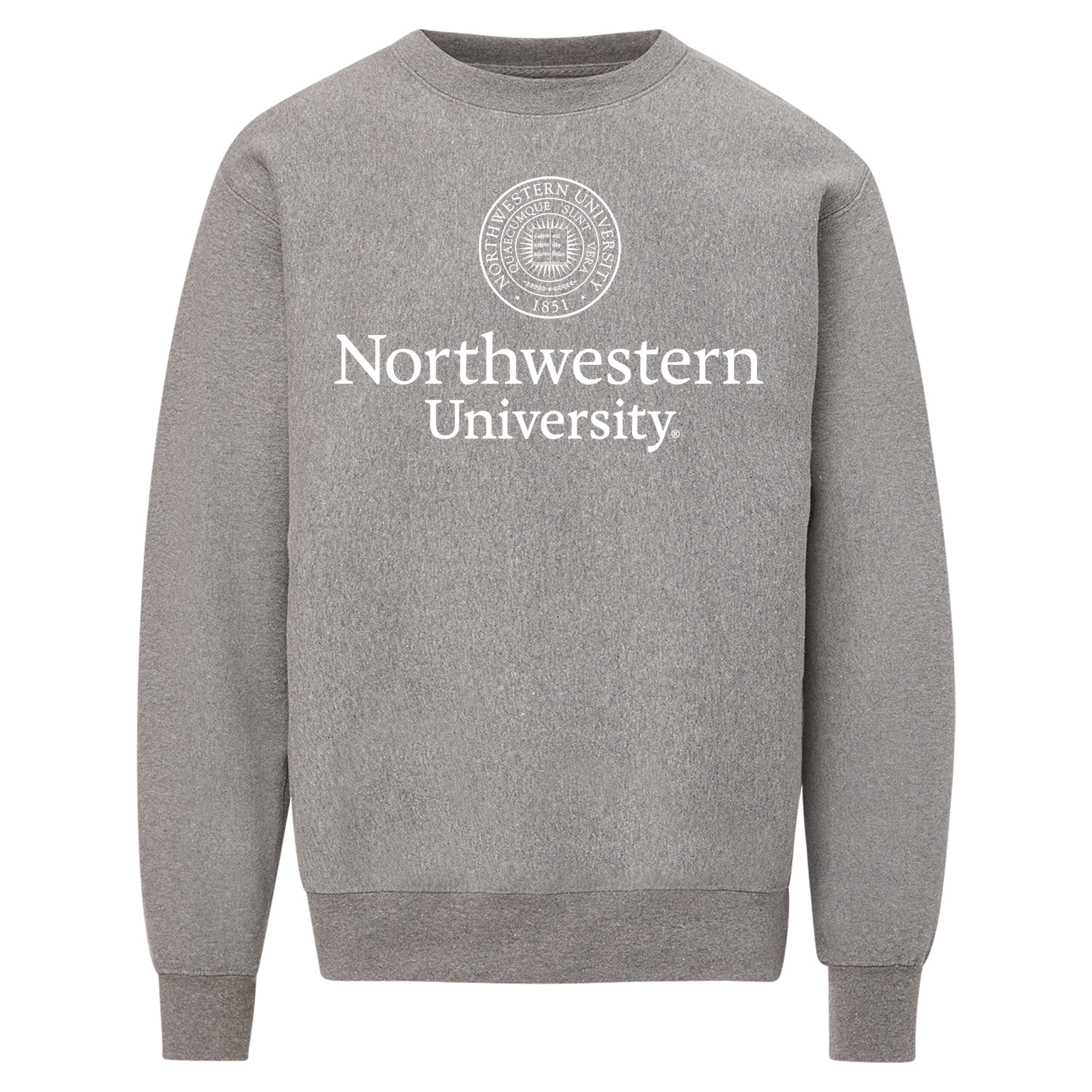 Northwestern University Wildcats Men’s MV Pro-Weave Super-Heavy Graphite Crewneck Sweatshirt with Seal Design in White