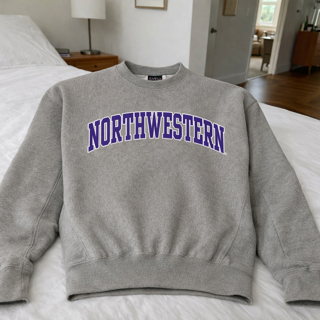 Northwestern University Wildcats Men’s MV Pro-Weave Super-Heavy Graphite Crewneck Sweatshirt with Two Color Arch Design