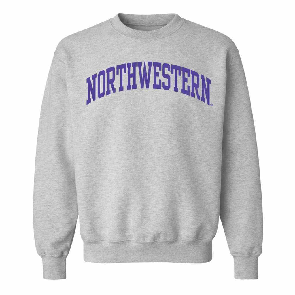Northwestern University Wildcats Men’s MV Pro-Weave Super-Heavy Heather Grey Crewneck Sweatshirt with One Color Arch Design