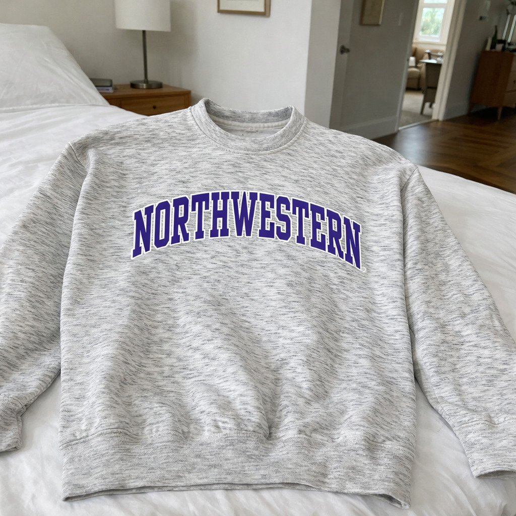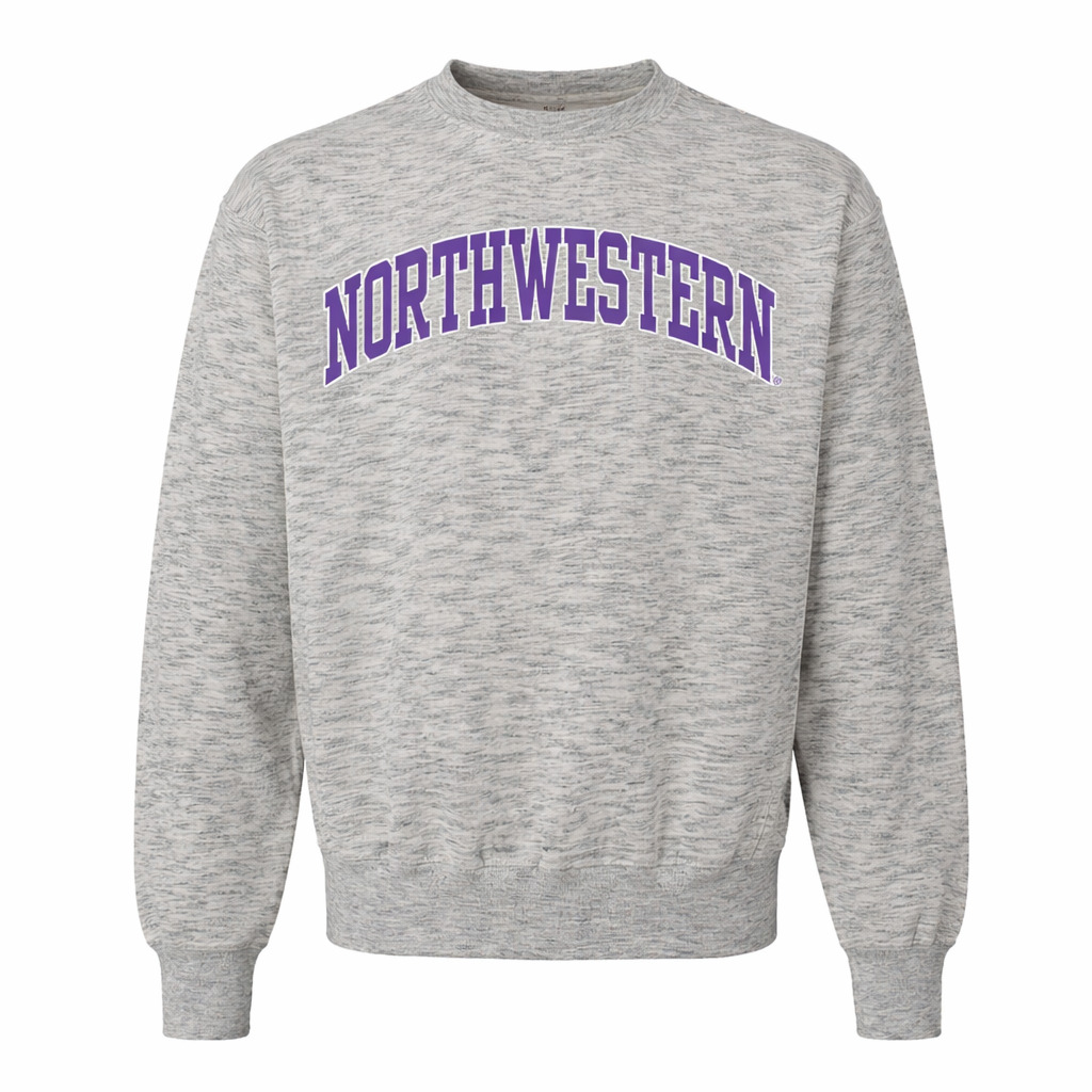 Northwestern University Wildcats Men’s MV Pro-Weave Super-Heavy Salt & Pepper Crewneck Sweatshirt with Two Color Arch Design