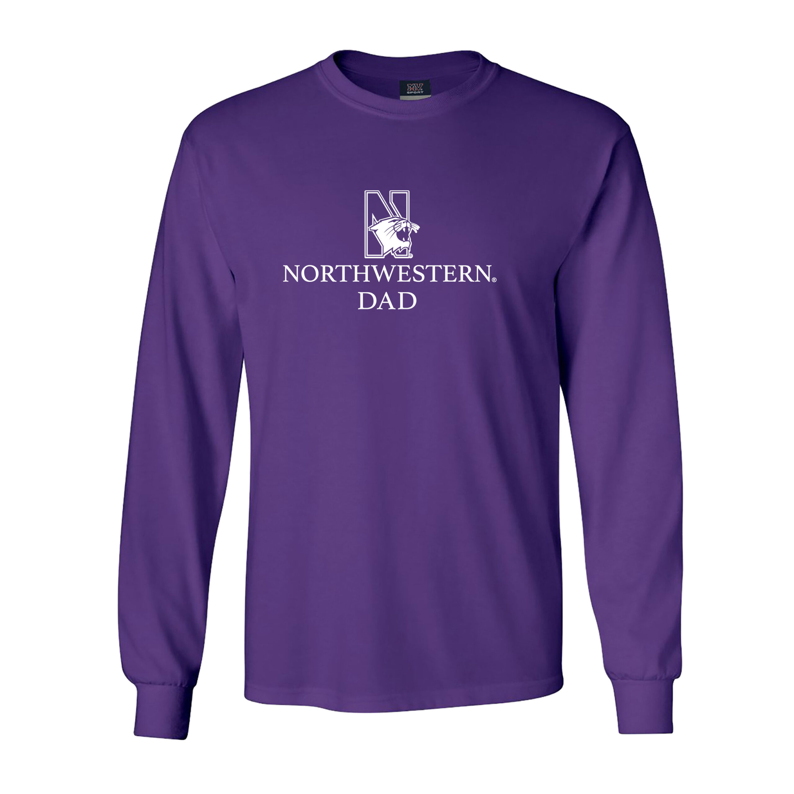 Northwestern University Wildcats Men's MV Purple Classic Long Sleeve Tee with Northwestern Dad & N-Cat Design