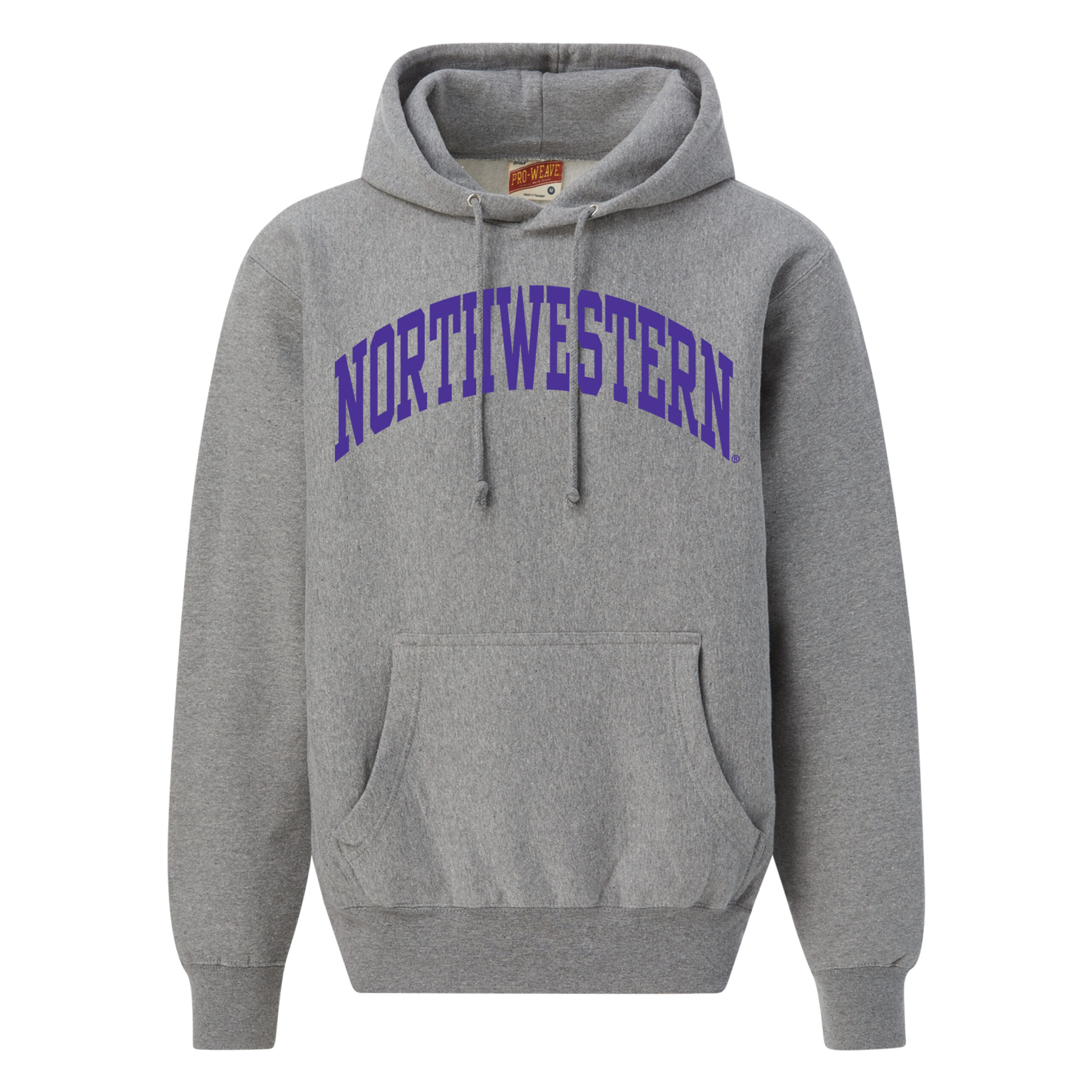 Northwestern University Wildcats Men’s MV Super-Heavy Pro-Weave Fleece Graphite Hooded Sweatshirt with One Color Arch Design in Purple