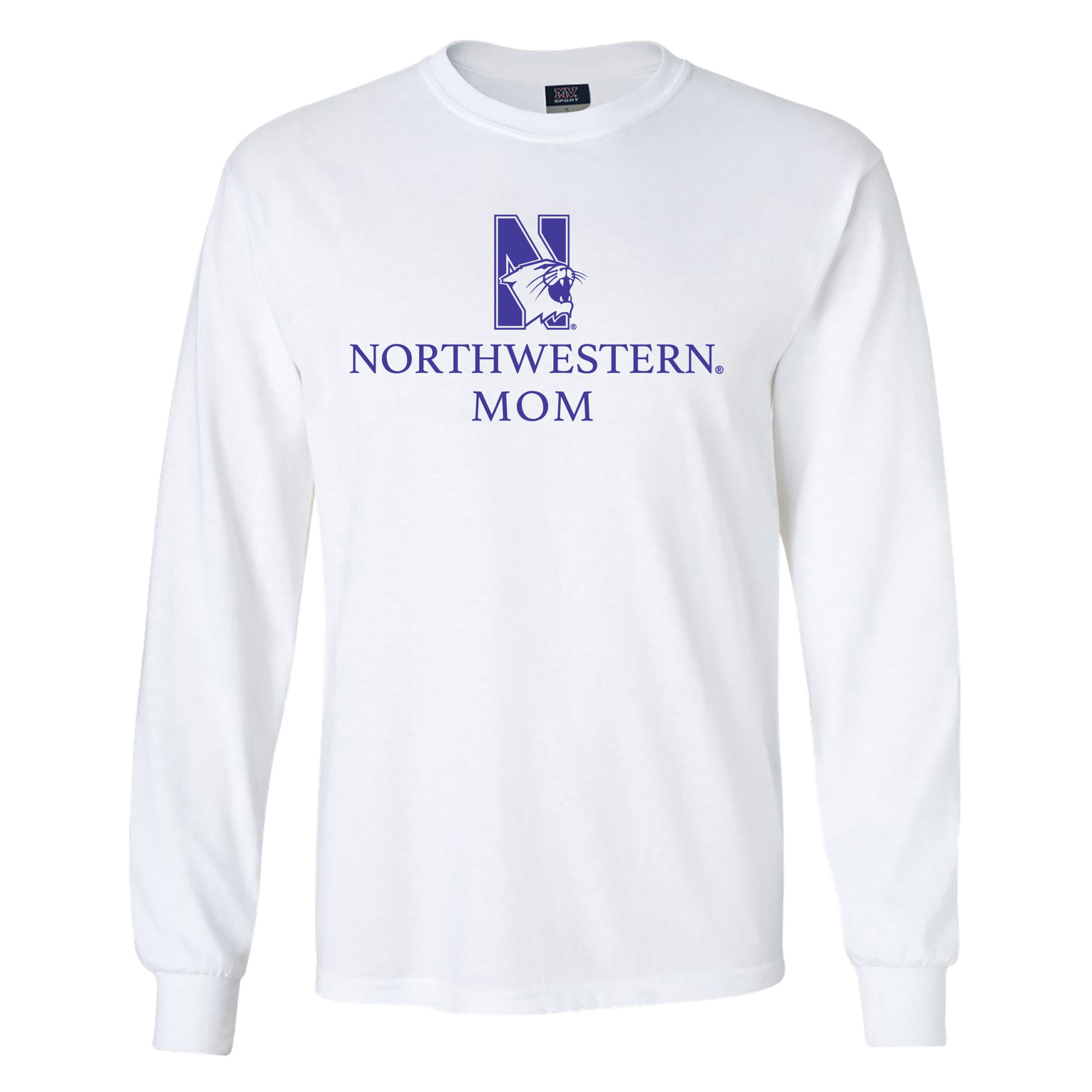 Northwestern University Wildcats Men's MV White Classic Long Sleeve Tee with Northwestern Mom & N-Cat Design
